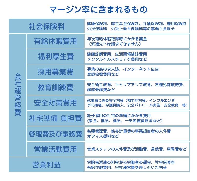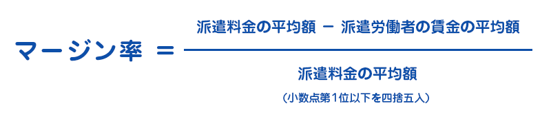 平成24年10月1日施行の「労働者派遣法改正法」により、派遣元事業者(当社)は、毎事業年度終了後、派遣先から受け取る派遣料金に占める派遣料金を派遣労働者に支払う賃金の差額の割合(マージン率といいます)を公開することが義務付けられました。